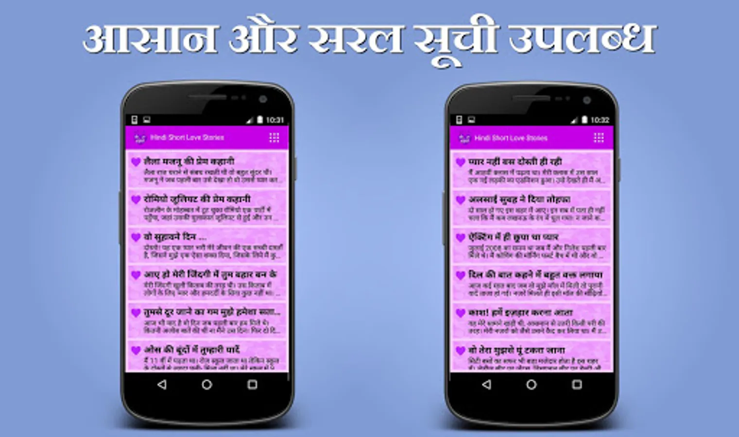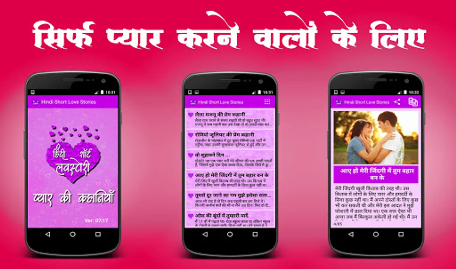 This app contains Collection of Lovely, Feel Good, Romantic Short Love Stories in Hindi Language for your reading purpose. You can also share these stories to your loved ones. Read these stories and be romantic.