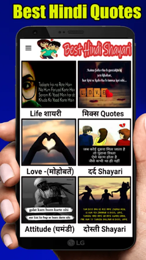 This app has lots of hindi status like it has motivational hindi status, sad shayari in hindi, Love status with images. you can download your hindi quotes by just one click or you can share with your friends.