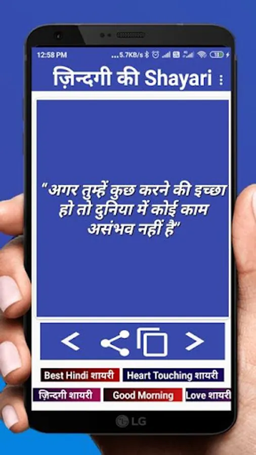 This app brings you the latest zindagi shayari like सफलता की शायरी, प्यार मोहोब्बत शायरी , गुड मॉर्निंग शायरी , दोस्ती शायरी, happiness within quotes.