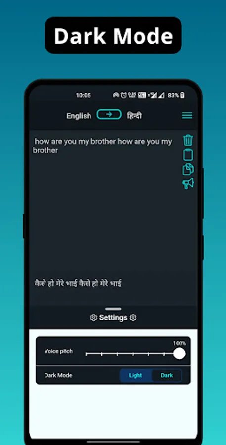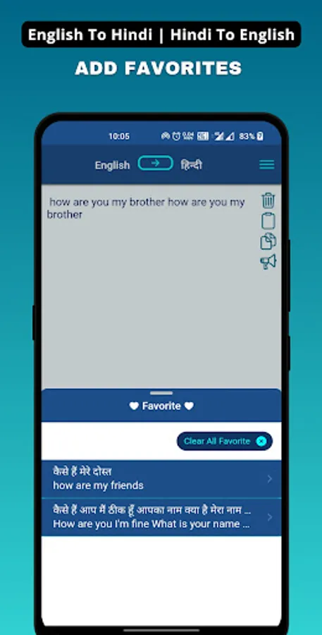 - You can copy any text on your device and by using paste button you can paste in app and translate your sentence.