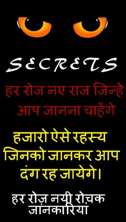 Friends first of all thanks for downloading and installing this application In this app you will get to know different hidden facts and information. Such viral information will increase in your general knowledge. Knowing something is a specialty of humans, but the source of information is very rare, we here in this app will try to give you the best general knowledge information, that you may not have seen or heared in your life Thanks I really hope you will enjoy this Viral Hindi new app. There are thousands of interesting facts about many things, that will amaze you and entertain you as well.
