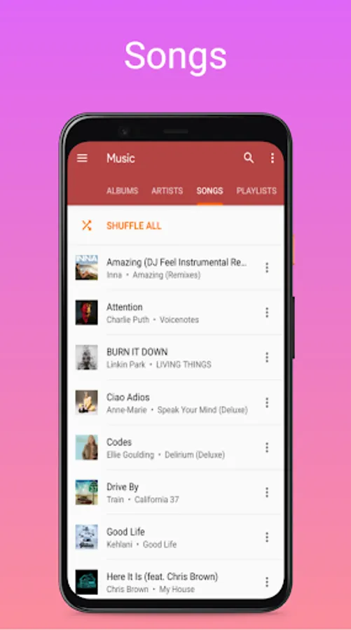 ⚡The music player provides convenient access to music: viewing lists of songs, albums, artists, genres and playlists. All song lists in the player can be sorted. A menu with options for editing and playback is available for each library item.