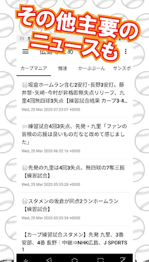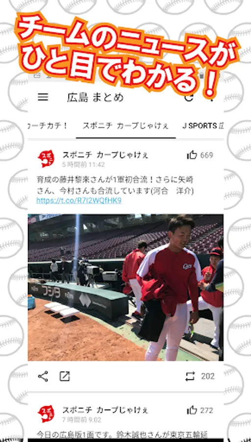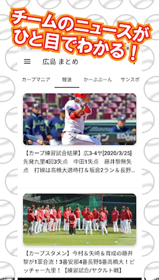 [Hiroshima Carp Breaking News (Unofficial)] is an application that summarizes information about Hiroshima Carp into one. You can grasp all information at once with this app.