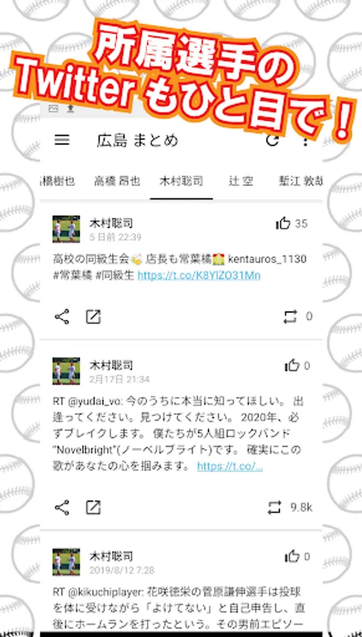 -You can check the tweet of a player at once because the twitter account of the player is put together.