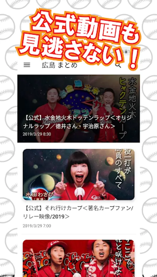 * This app is an unofficial app of Hiroshima Carp belonging to NPB (Japan Baseball Organization) and has no direct relationship with our team.