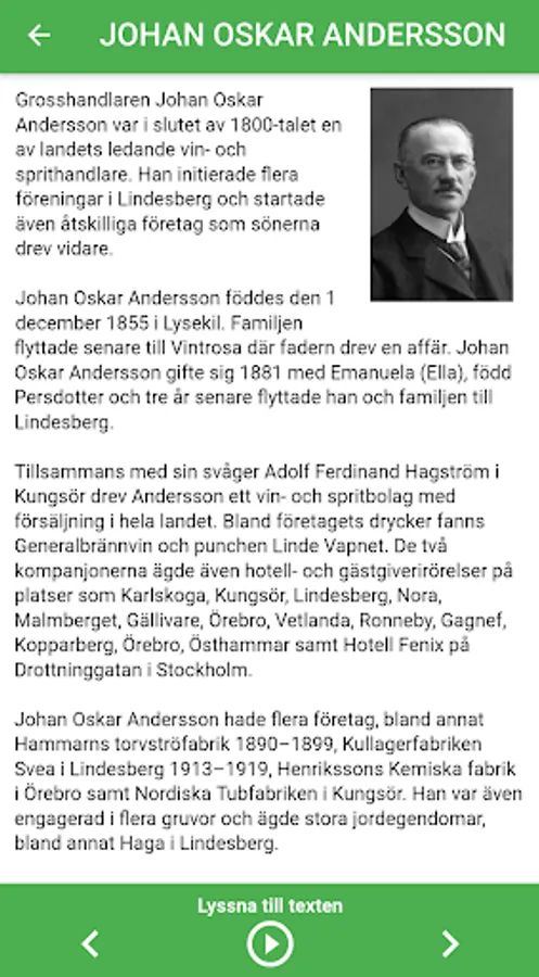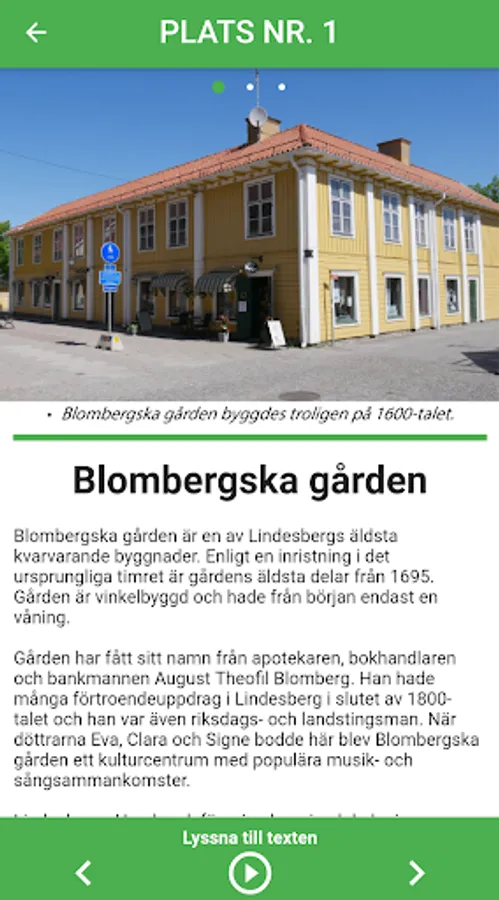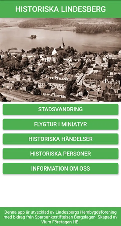 Interested in Lindesberg and history? With this app from Lindesbergs Hembygdsförening you can walk around the center of Lindesberg to nine interesting places that are presented with text, sound and image. In addition, you can read and listen to stories about important people and events in the city's history. You can also join a flight over our miniature exhibition that shows the city as it looked in the 1920s.