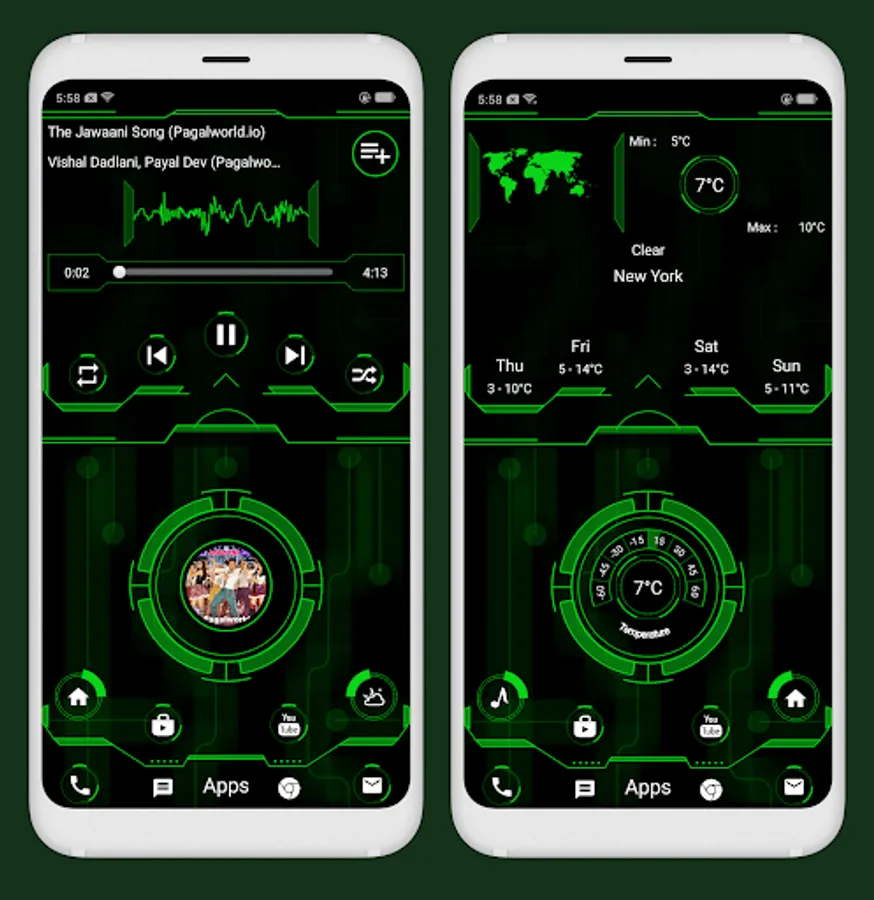 Modern style hi-tech launcher provides you on screen music player with Hi-tech UI. Access all your phone music from Home screen.