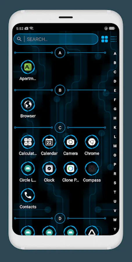 Hi-tech next generation launcher provides text search of apps and also by alphabates index which gives fast access to apps.