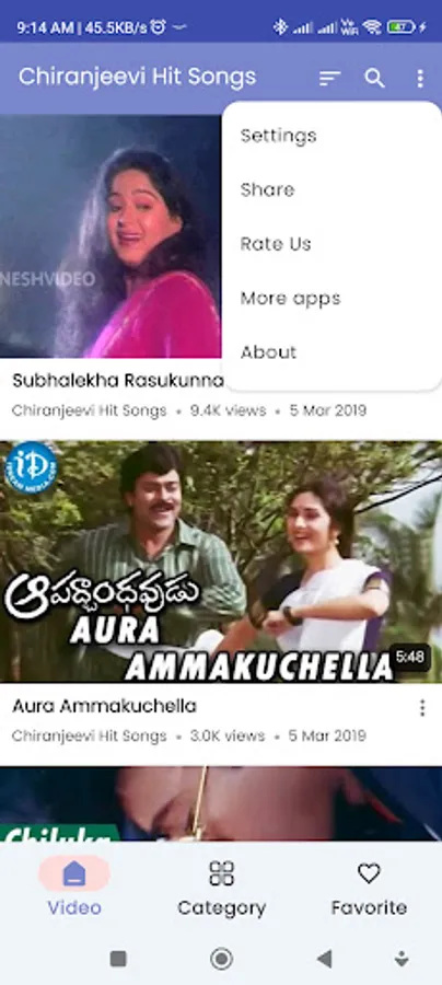 In Chiranjeevi Hit songs app one can easily bookmark their favorite Chiranjeevi video song and then watch them later by going to favorites section from the navigation bar.