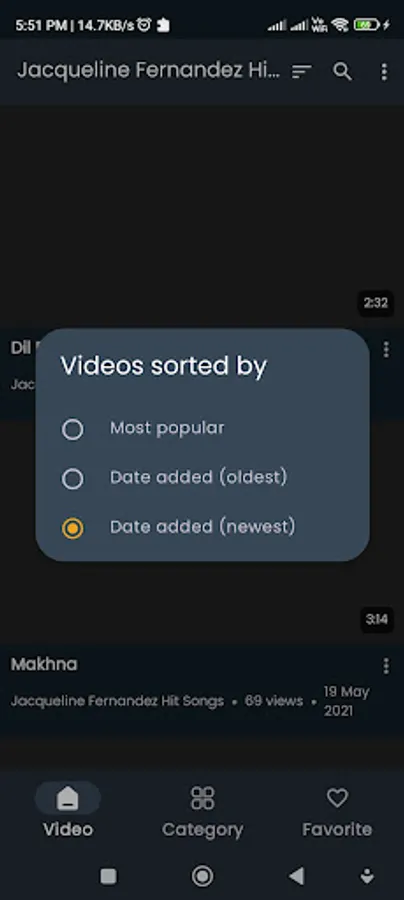 In the app one can easily bookmark their favorite Jacqueline Fernandez video song and then watch them later by going to favorites section from the navigation bar.