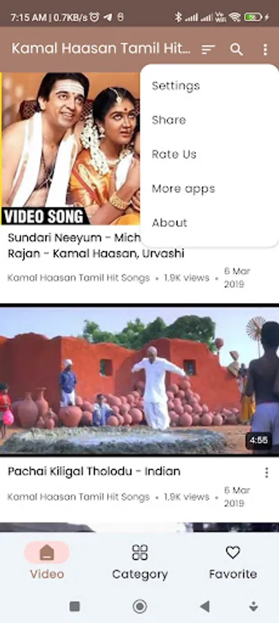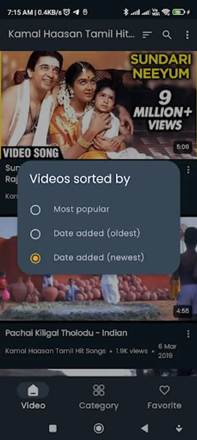In Kamal Haasan Tamil Hit songs app one can easily bookmark their favorite Kamal Haasan Tamil video song and then watch them later by going to favorites section from the navigation bar.