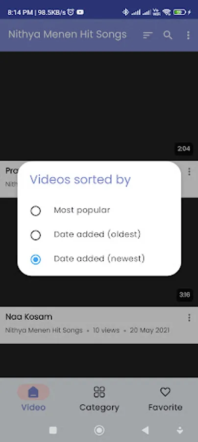 In Nithya Menen songs app one can easily bookmark their favorite Nithya Menen video song and then watch them later by going to favorites section from the navigation bar.