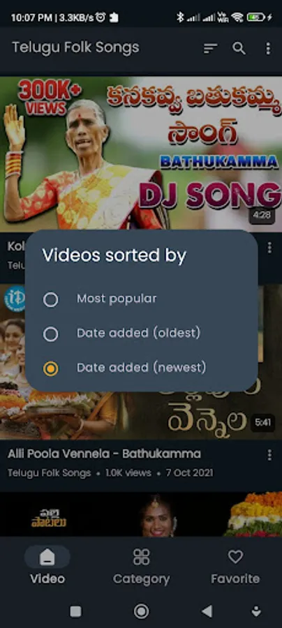 In Telugu Folk songs app one can easily bookmark their favorite Telugu folk video song and then watch them later by going to favorites section from the navigation bar.