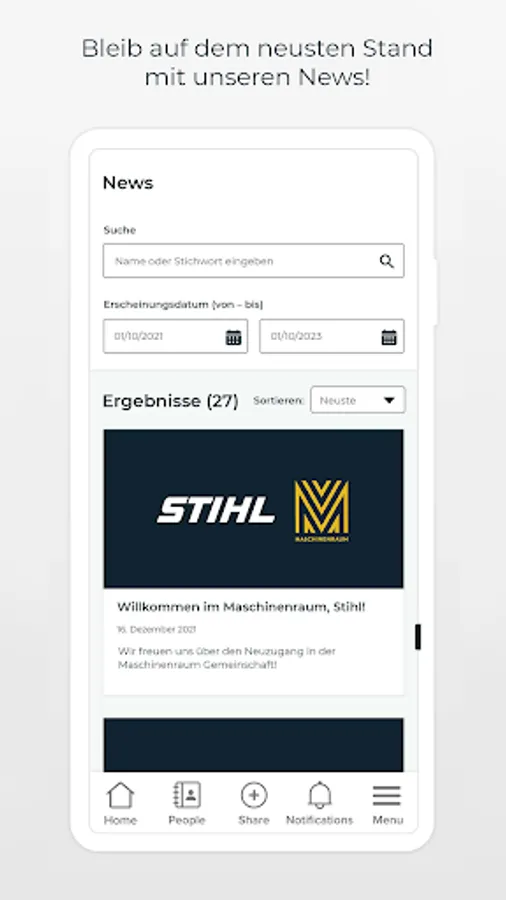 Book meeting and event rooms on demand with Robin, receive real-time notifications from the Maschinenraum team and ecosystem, exchange with your community on relevant topics, connect with other members and different companies and find other experts from your field, register for one of our many events, initiate your own exchanges or execute a project, find useful information about Maschinenraum and its office space