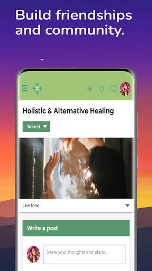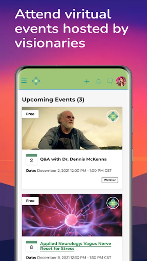 Spend time with your community, stay up to date with relevant live events from practitioners and experts, and discover new practices to support your life.