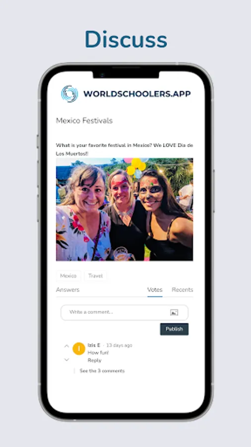 Worldschoolers.app is an online community for worldschooling families to connect with other like minded families, discover other communities and events, discuss and share what they love, advice, stories and tips.