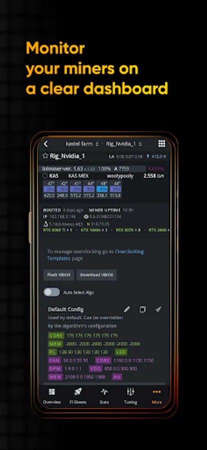 Keep track of the hashrate, online statuses, GPU/ASIC errors, team activity, pool configurations, and power consumption. Troubleshoot and reboot miners remotely, or perform bulk updates across the farm. Do this all from anywhere across the globe with Hive OS.