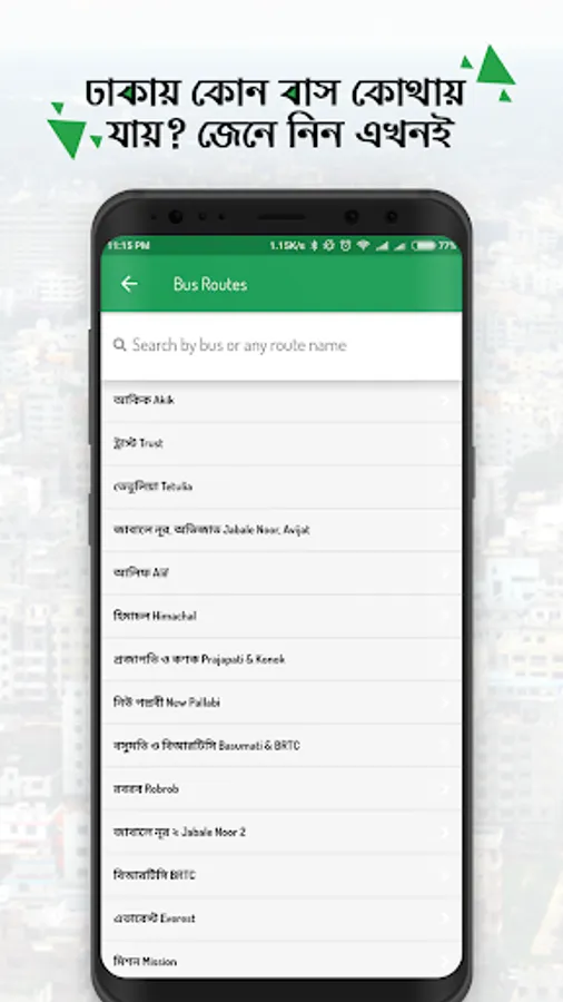 - Bus route information for Dhaka city.