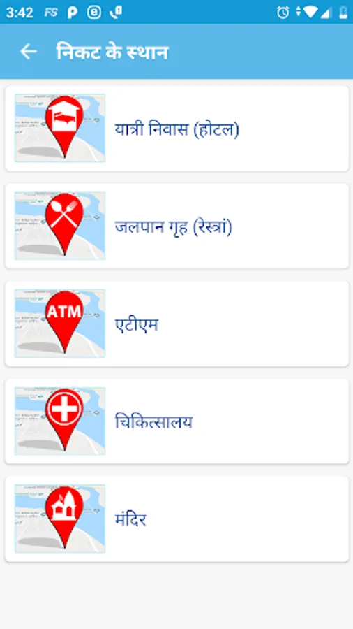2. Nearby places to visit like Hotels, Restaurants, ATMs, Hospitals, Temples etc.