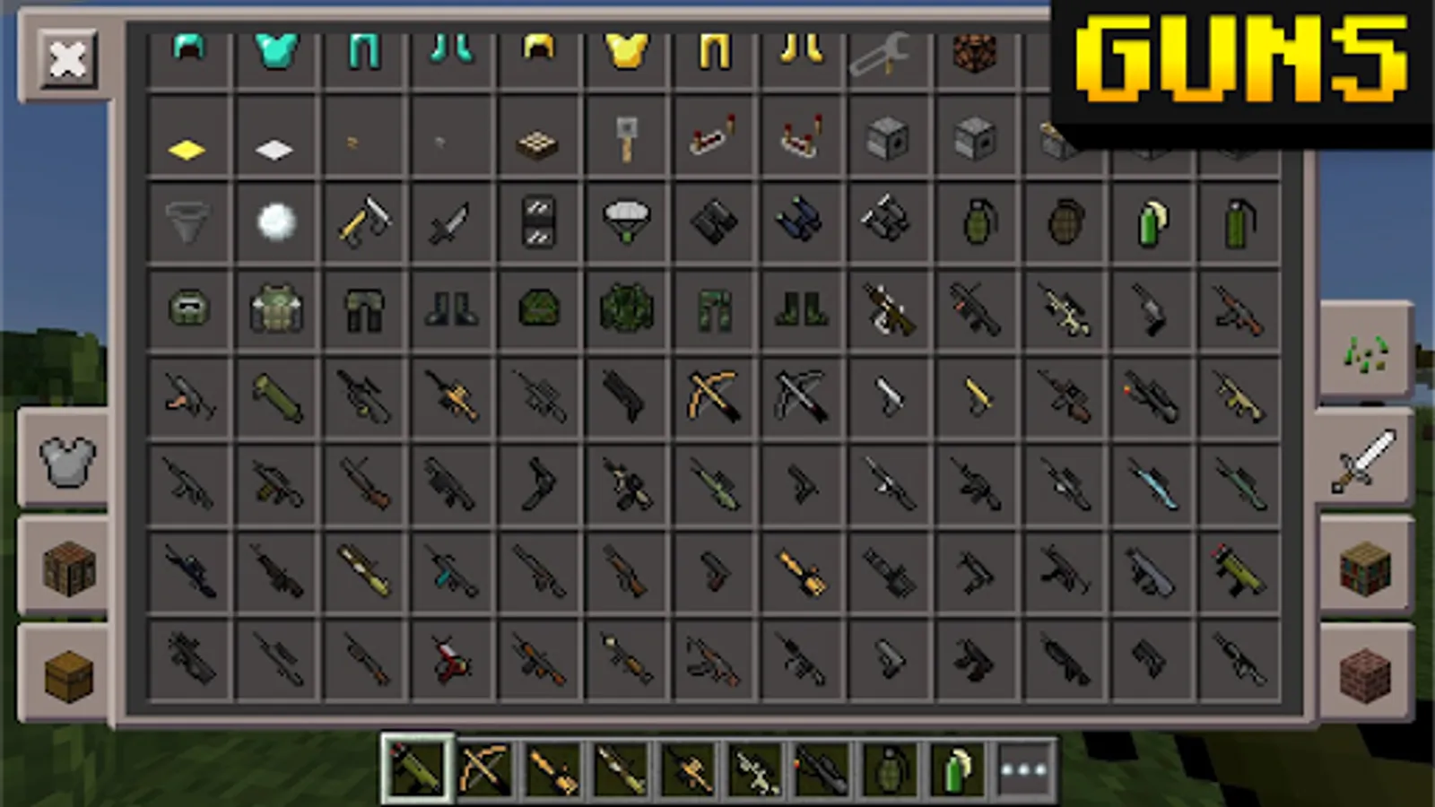 There are times when you are attacked by zombies for minecraft or players who just want to spoil your survival. But now you can absolutely download weapons for minecraft for free and destroy everyone! Arrange the most real shootouts in minecraft or declare war on zombies and exterminate them all!