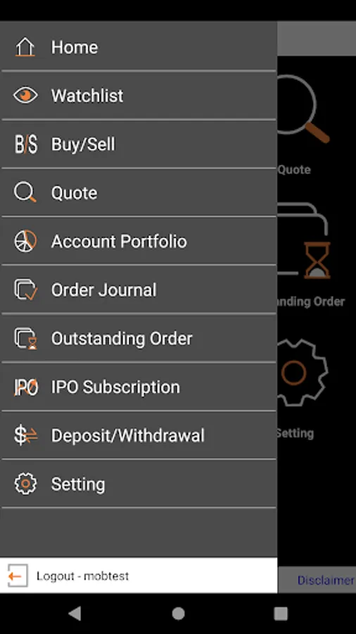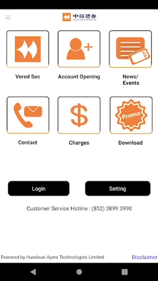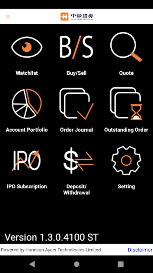 Android應用程式支援繁、簡中文及英文。客戶可透過此程式進行證券交易,交易介面簡單易用, 並有多種買賣盤功能,是客戶快速流暢進行股票買賣的理想工具。