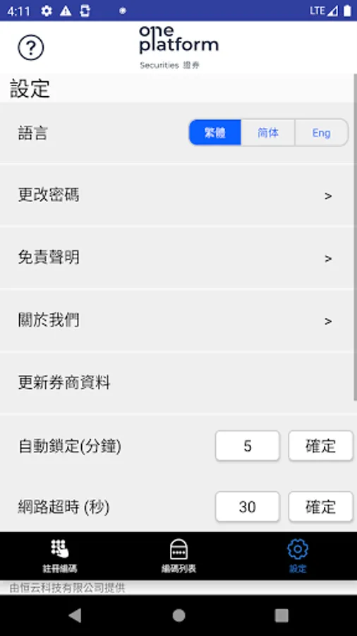 OnePlatform Securities Token is a very cost-effective solution to fulfill the market and regulatory requirement on additional user authentication for online trading under a higher level of security. A registered security token with user login makes the Software Token much suitable for online trading. More importantly, the Software Token app renews the one-time password every 30 seconds without consuming any mobile data usage which highly enhance your true online trading experience anytime, anywhere.