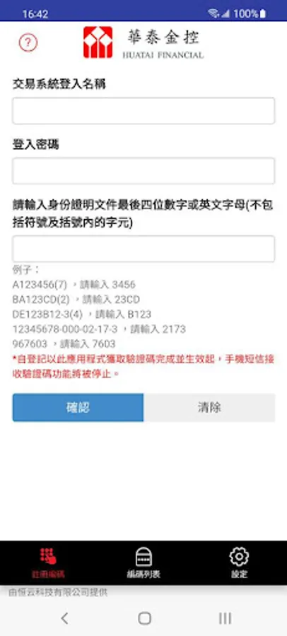 Huatai Token is a Two Factor Authentication software for securities trading for Huatai Financial Holdings (Hong Kong) Co., Ltd. Once registered and enabled, it can generate security codes without data network, which ensure trading anywhere anytime.