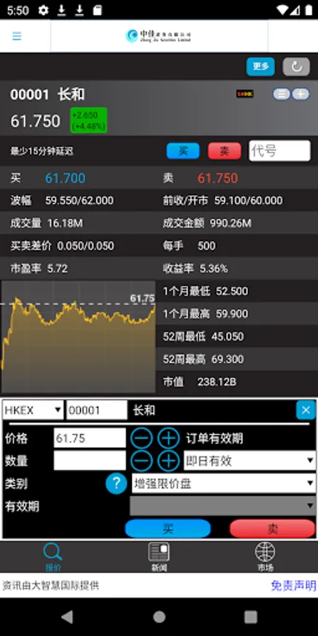 Zhong Jia Securities Limited (“ZJS”) has been developing diversified securities trading platforms to provide all-rounded investment services. Apart from the established phone order and online securities trading system, ZJS is now offering a new mobile securities trading system for Android devices. This new application operates quickly, smoothly and stably, aiding you to exploit every investment opportunities ahead at your fingertips.
