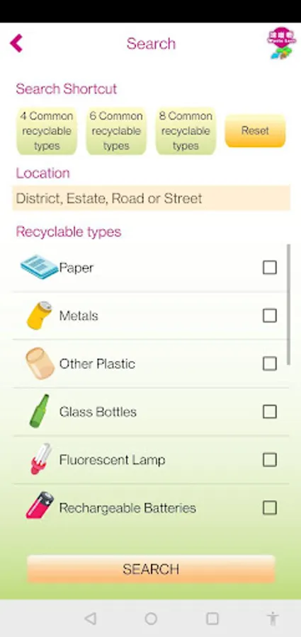 - “Search” function to find out the most suitable collection points for recyclable items;