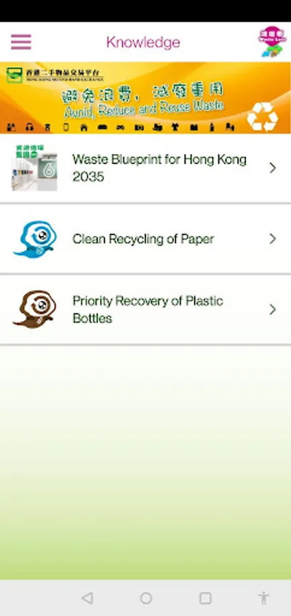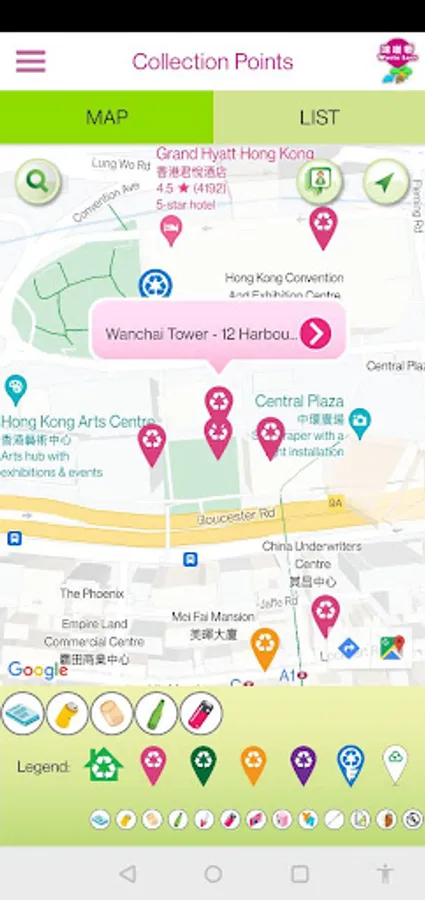 “Waste Less” is a mobile app developed by the Environmental Protection Department (EPD) of the Government of the Hong Kong Special Administrative Region. Its primary function is to show nearby collection points for recyclable items via a map on your device, with details, including photos, address, recyclable types, opening hours, etc.