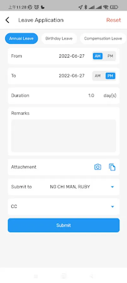 - Apply and approve leave