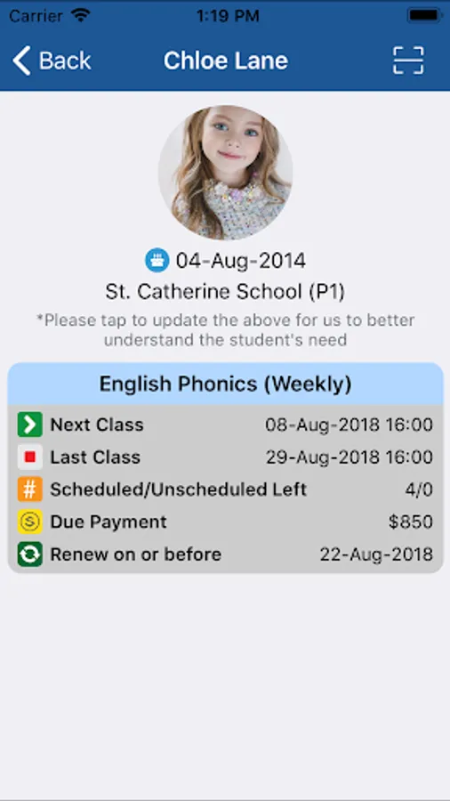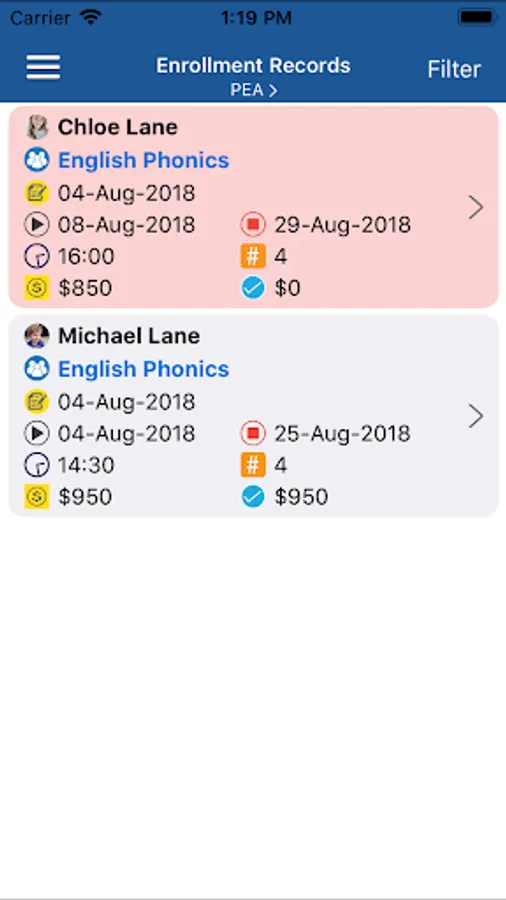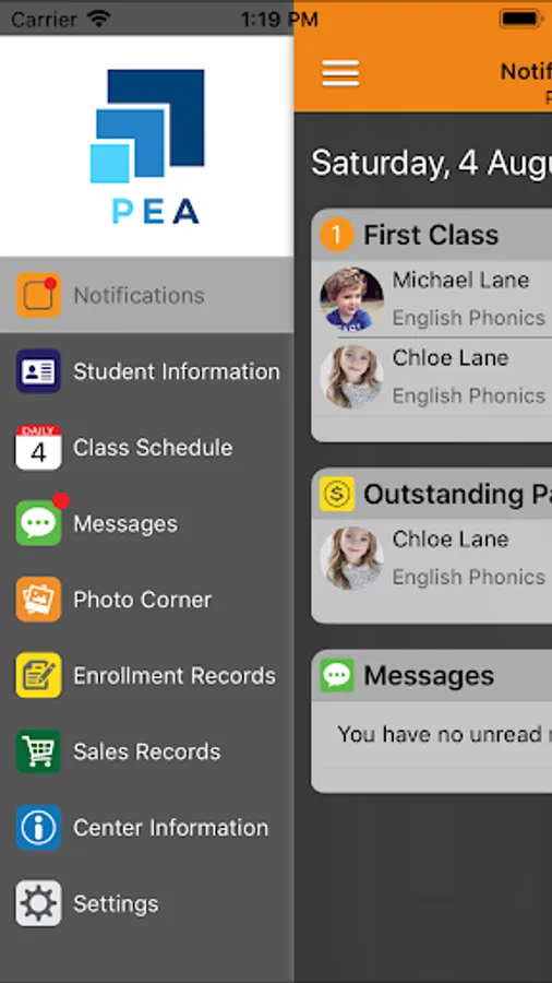 • hassle-free service (the PEA mobile app enables parents, at their convenience, to monitor student progress, access information, keep up with the latest news, and cancel/re-schedule a class session)