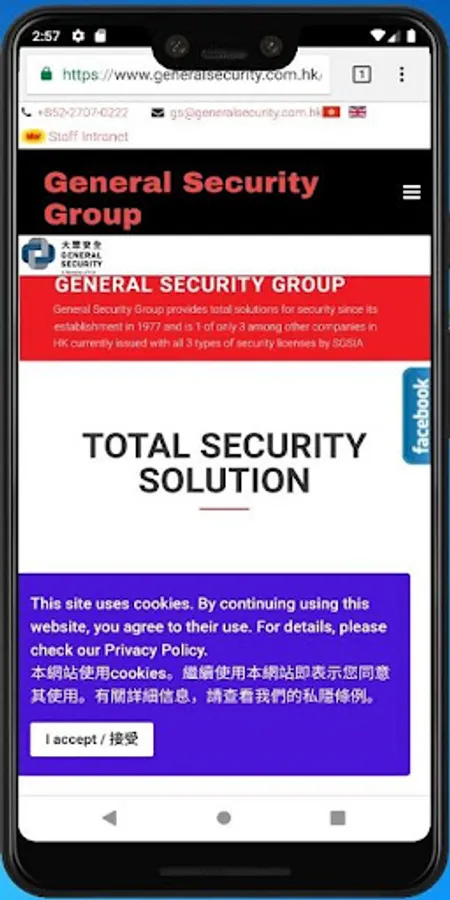 General Security (H.K.) Ltd., being founded in 1977, has built up a well-developed management and system with extensive security experience. The services cover all security aspects with different scales. The company possesses with a strong capacity for mobilization to cater for ad hoc security service. We have enriched experience in delivering high quality security services in large-scale events such as exhibitions held in the Hong Kong Convention and Exhibition Centre, the Olympic Equestrian events in 2008, racecourses, or smaller scale but unique and specialized security service such as for luxury jewelry stores and law firm office and etc..