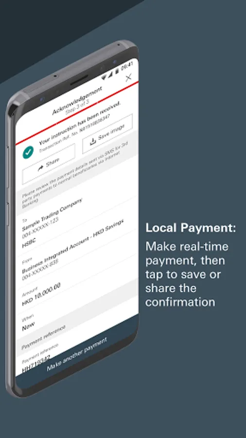 • Simpler and faster payment: You can now make local and international payments on the go, and make it even easier by using Mobile Security Key instead of your physical Security Device. If your payee is in Hong Kong, you can make payments using their mobile number, email address, FPS ID or by scanning a QR code. Once completed, you can tap to save or share a copy of the payment confirmation