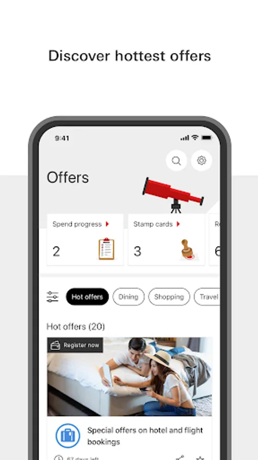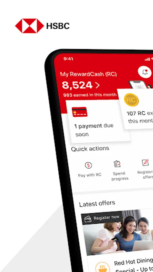 A dedicated HSBC Credit Card mobile app which enables HSBC credit cardholders to view an array of fabulous offers at a glance, and manage credit card rewards and transactions anytime anywhere. With the app, you can enjoy: