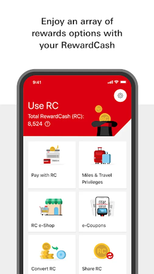 (1) "Use RC" – use RewardCash as you like, including settling transactions with RewardCash; redeeming air miles, gift or vouchers; converting into third party loyalty programme points; transferring with friends & family