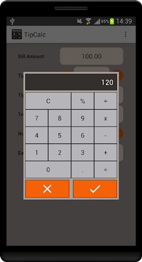 This tip calculator can help you now. This application not only calculates tips quickly and easily. It also helps to split the bill by number of people.