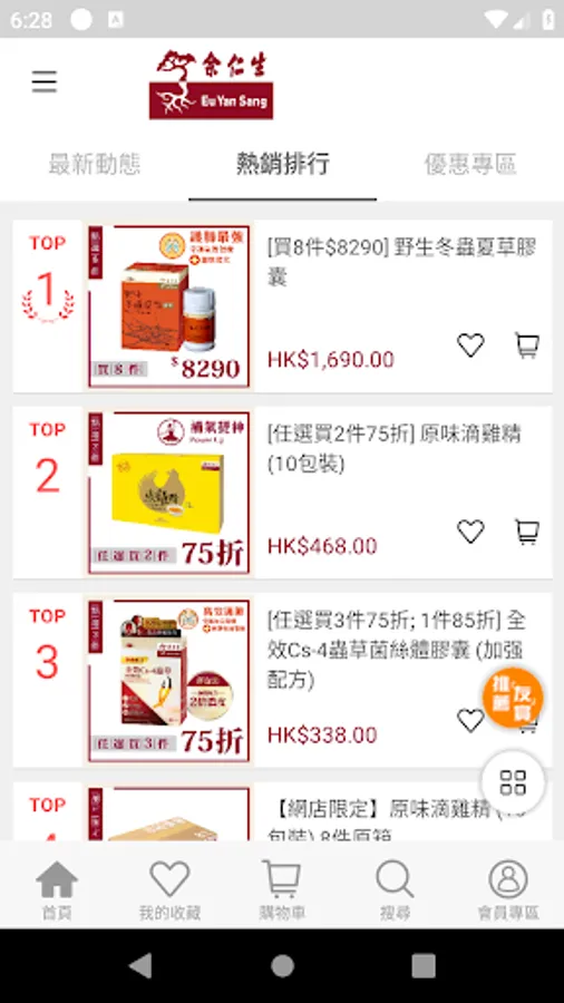The Eu Yan Sang Hong Kong APP brings you a brand-new and easy shopping experience, where you can learn more about Chinese medicine information, member-exclusive discounts and member point rewards anytime, anywhere.