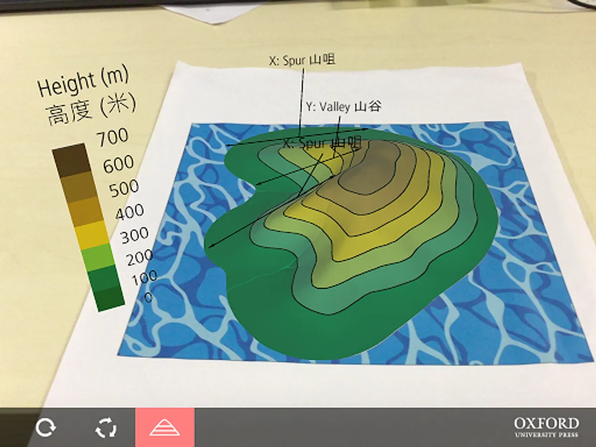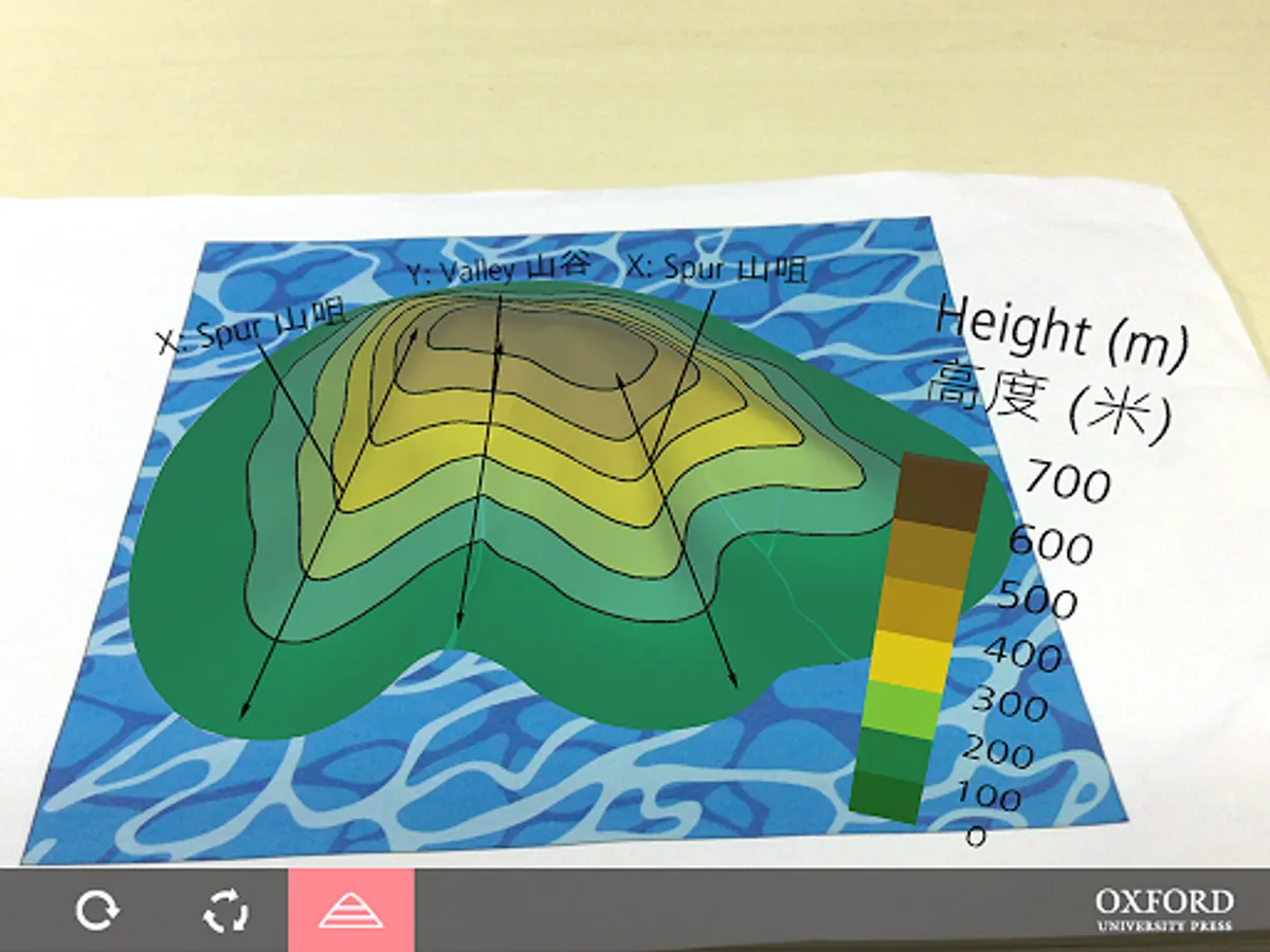 地理科學生學習地圖閱讀技能時,其中一個經常遇到的難題是怎樣將平面的等高線想像成立體的地勢。本AR工具有助學生培養立體概念,學懂怎樣將各種平面的等高線地圖形象化,成為立體的地勢模型。