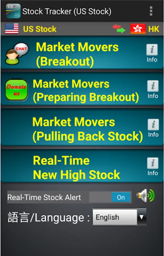 US Stock Tracker is a App designed for the US Stock Market, which can help user find the stock with unusual trading volume and Real-Time pop-up a alert message to user.