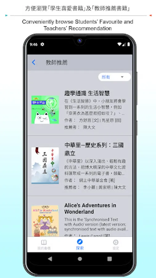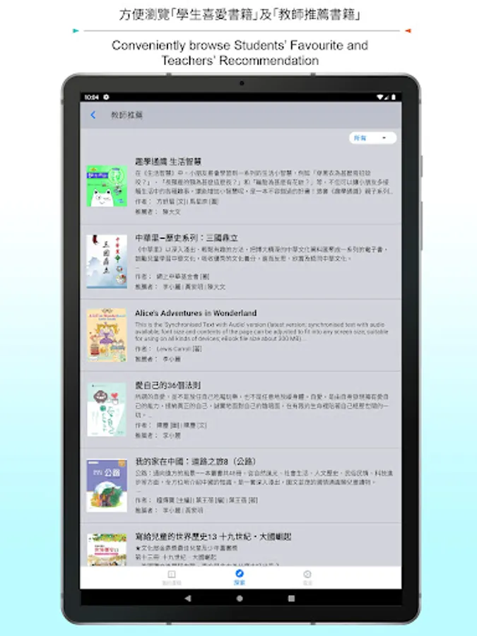 • Teachers’ Recommendation: students can conveniently browse all books recommended by their teachers.