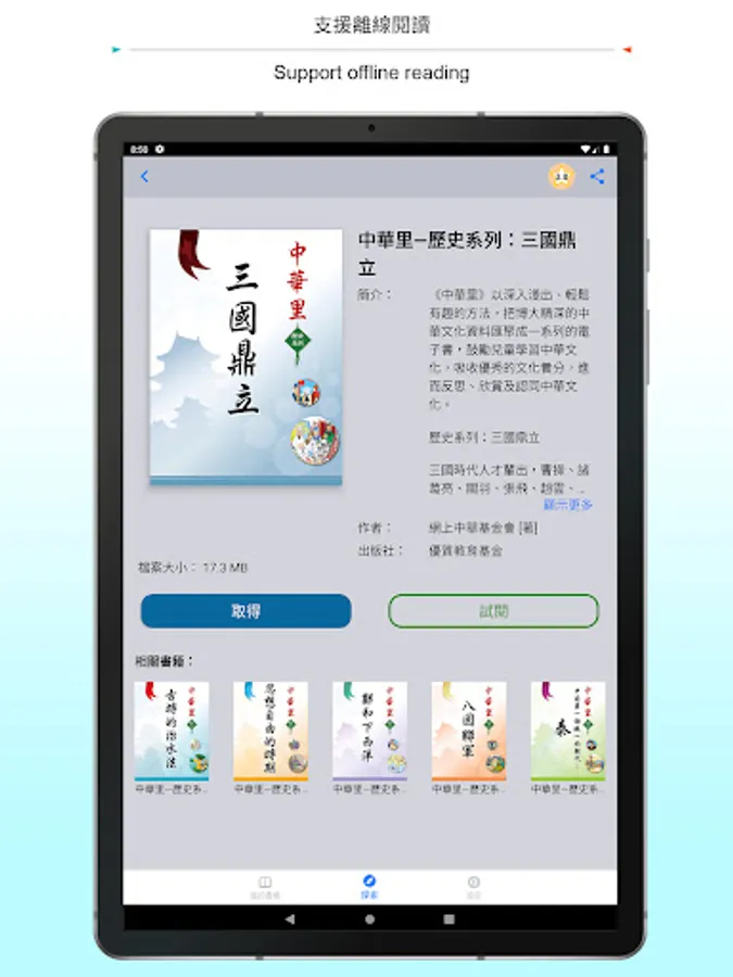 • Offline Reading: read books without the Internet after download.