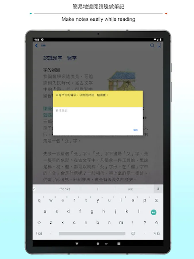 • Reading Notes: make notes by adding annotations and highlighting sentences.