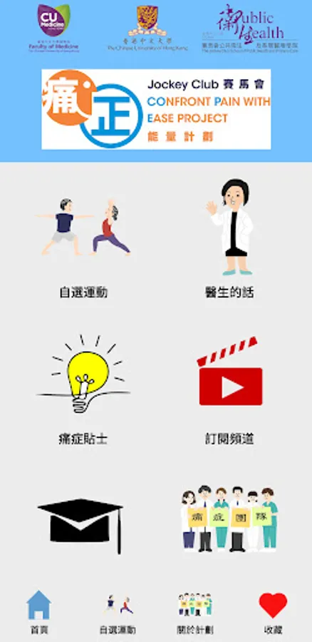 "CUHK Pain" is a pain information mobile application developed by the Chinese University of Hong Kong Jockey Club Pain Positive Energy Project.