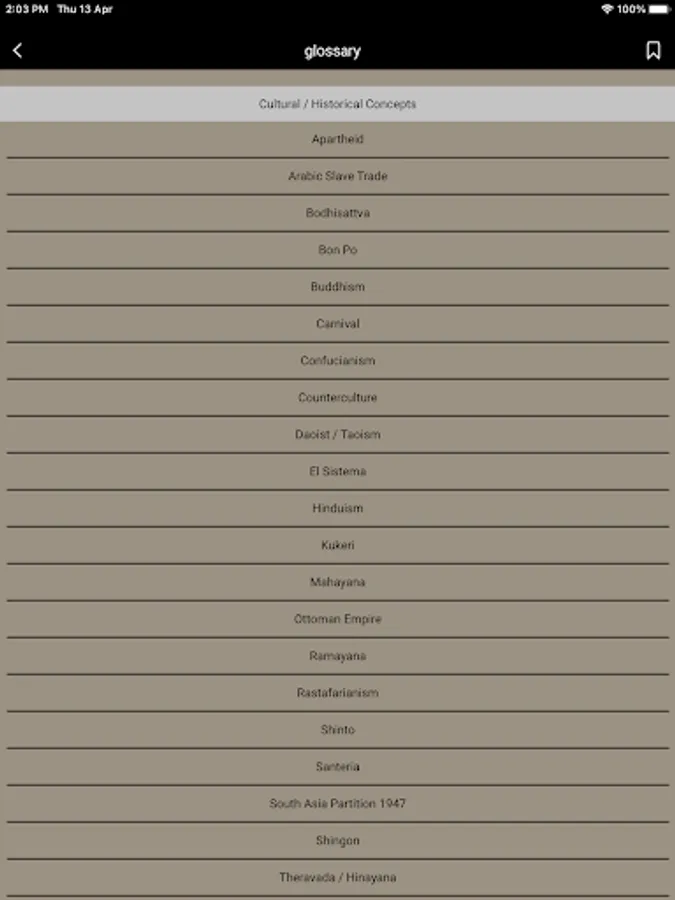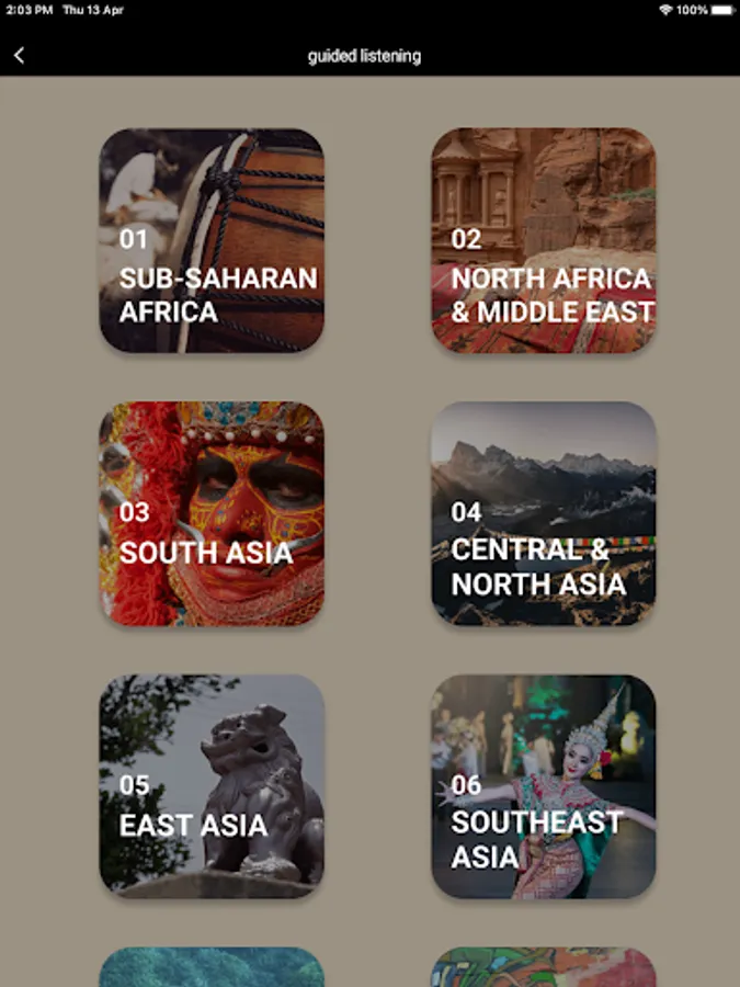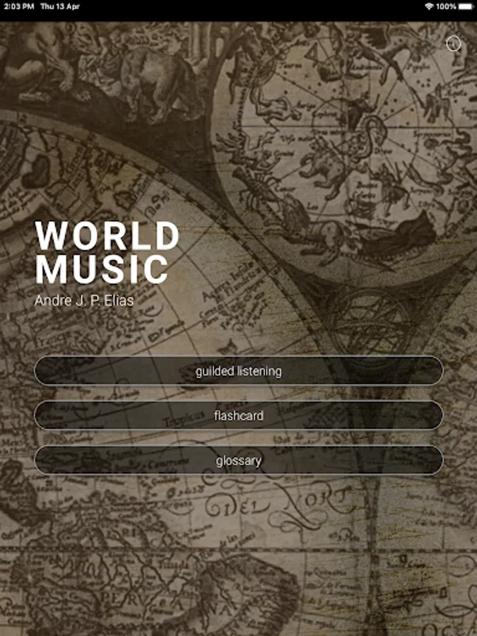 This guided listening app was designed to accompany a 12-week undergraduate course on the topic that introduces key concepts to the study of music around the world. It features guided listening along with points to remember, flashcards, and a glossary. This app is ideal for an ethnomusicology focused course that seeks to match musical knowledge and appreciation with cultural and historical understanding.