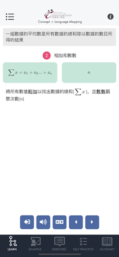 Math CLM is an animated bilingual “Concept + Language Mapping” (CLM) (Lin, 2018; He & Lin, 2019) digital application supports students’ cross-linguistic and cross-modal transfer of prior math learning in a Content and Language Integrated Learning (CLIL) context which is funded by the Quality Enhancement Support Scheme (QESS) of the Self-financing Post-secondary Education Fund (SPEF). It provides a platform for students to review the mathematical concepts learnt in HKDSE through a CLIL approach, and under this approach language and mathematical concepts can be learnt together.