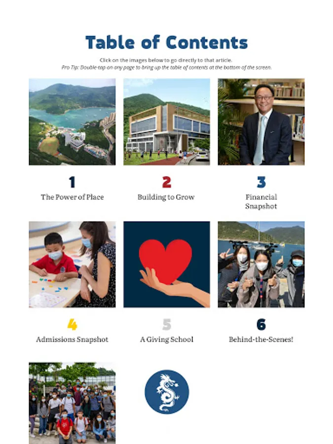 Download the HKIS Pages app to access a new digital library for original school publications, like the DragonTales magazine and special reports. Using this app, you can enjoy the same engaging school-related content with even more dynamic features in one easy-to-find place.