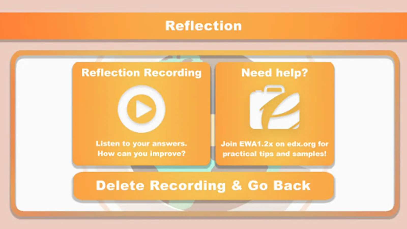 The interview process is recorded so that you can review and reflect upon both your interview performance and the language skills you have displayed during the interview.