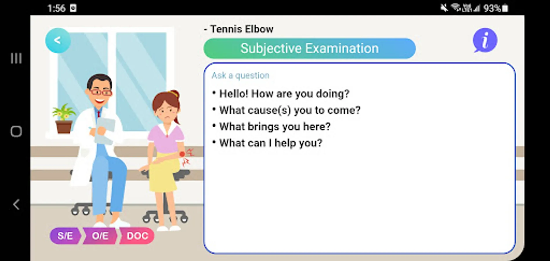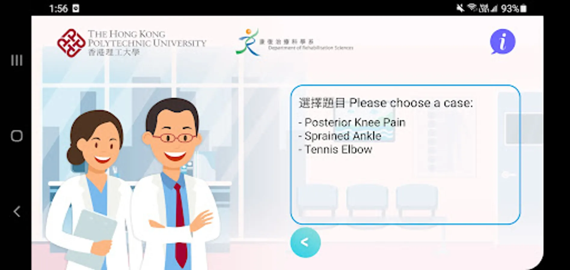 Interactive Virtual Patient (IVP) is developed by Department of Rehabilitation Sciences (RS) of the PolyU. IVP simulates a real life physiotherapy session. IVP simulates the situation that the patient just walks into a physiotherapy clinic and students start from scratch with no more information than a referral letter. Under a safe and risk-free environment, students have their freedom to attempt and start with various types or orders of questions in subjective and objective examination when assessing the IVP.
