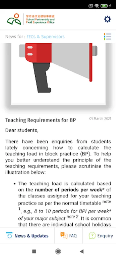 MySPFE is an official mobile application provided by School Partnership and Field Experience Office (SPFEO), The Education University of Hong Kong, specifically for primary and secondary schools, EdUHK staff and students. This app features: